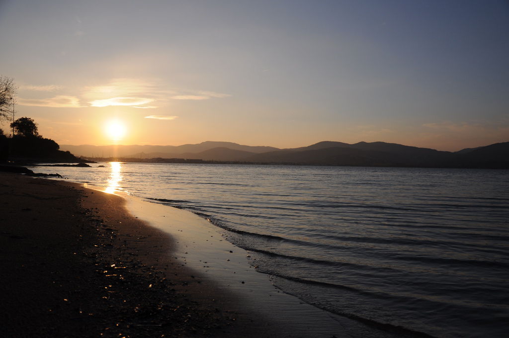 剛好看到有夕陽,於是我們把車一停,看到有一個小路,可以走到海岸邊